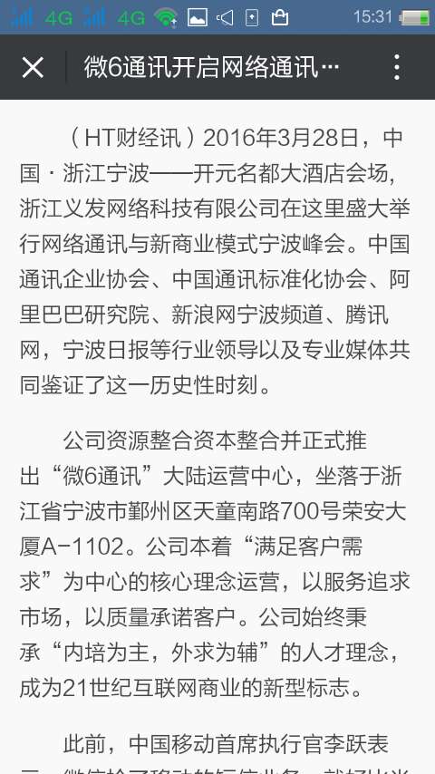 微6電話是一款網(wǎng)絡(luò)電話,是網(wǎng)絡(luò)與科技的結(jié)合,創(chuàng)新了原來傳統(tǒng)電話模式,由傳統(tǒng)電話設(shè)備與電話線轉(zhuǎn)變?yōu)樽呔W(wǎng)絡(luò)線路,這樣電話資費就可以便宜很多。本公司和三大運營商合作,租用移動基礎(chǔ)設(shè)備和線路。2016年國家工信部全面實施移動轉(zhuǎn)售業(yè)務(wù),國家政策扶持,鼓勵民營進入通訊行業(yè),激勵國企改革創(chuàng)新,促進網(wǎng)絡(luò)通訊行業(yè)的發(fā)展。本公司有國家工信部批發(fā)的三方通訊許可,是一家正規(guī)合法的通訊公司。也是唯一一家受邀參加cctv光榮之路接受采訪的網(wǎng)絡(luò)通信品牌。