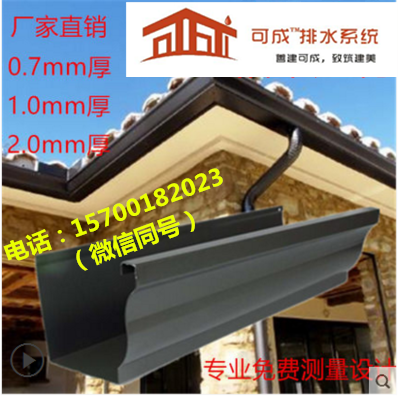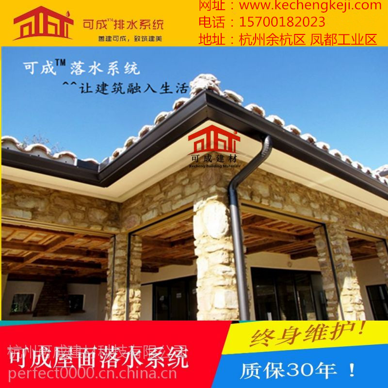 廠家直銷、大量低價批發(fā)出售別墅雨落水系統(tǒng)、成品天溝、檐溝、k型天溝、落水管、方形雨水管,10米起批,落水系統(tǒng)是杭州可成建材科技有限公司的專利主打產(chǎn)品,暢銷全國。 可成金屬落水系統(tǒng)具有卓越的耐候性,設計簡潔,安 裝簡單,安 全耐用。其豐富的色彩,金屬的質感,優(yōu)美的造型為建筑物帶來強烈的表現(xiàn)力。 主要有彩鋁、pvc塑料,銅等多種材質,充分滿足開發(fā)商特殊的建筑需求;兩大系列產(chǎn)品造型滿足不同建筑風格,k型雙曲線造形體現(xiàn)歐美現(xiàn)代風格,時尚典雅;半圓型體現(xiàn)西班牙風格,自然古樸新型落水系統(tǒng)在突破傳統(tǒng)建筑落水檐槽的基礎上,追求創(chuàng)新的思維理念,設計出了富有現(xiàn)代感色彩線條流暢的新型落水系統(tǒng)。增強了建筑的整體效果,使建筑增添了別致的韻味。滿足了廣大客戶對創(chuàng)新的渴求;白色,灰色,棕色的多種色彩,讓廣大客戶對色彩的挑選,并使建筑外墻與屋面更加相得益彰、充滿活力,使建筑與自然環(huán)境更加融為一體。