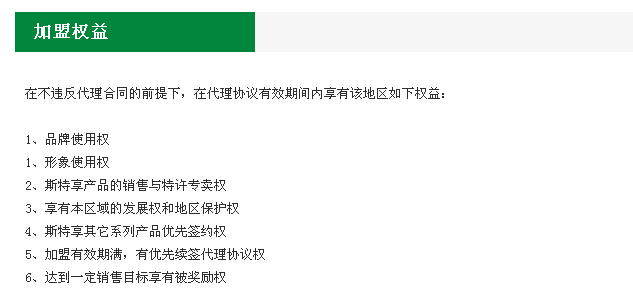 加盟斯特亨公司您可以享受以下優(yōu)勢(shì)與權(quán)益: