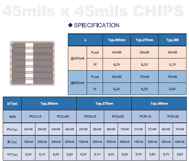 265nm 275nm 295nm 310nm 365nm 385nm 395nm 405nm 燈珠 chip
