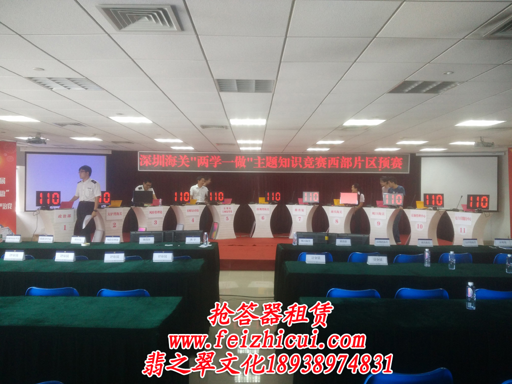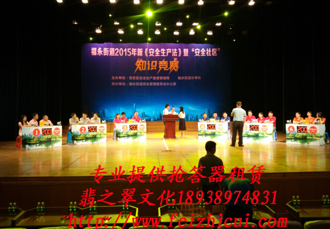 電腦搶答器是我公司專為各機(jī)關(guān)事業(yè)單位、大中院校、企業(yè)、銀行、醫(yī) 院等單位量身打造的高端知識(shí)競(jìng)賽電腦搶答器。功能齊全,包括:搶答,加減分、顯示題目及結(jié)果、倒計(jì)時(shí)、宣布各隊(duì)分?jǐn)?shù)及排名、選手上場(chǎng)音樂及頒獎(jiǎng)音樂等?蛻糁恍柙诒荣惽皩⑺匈Y料交于我們。在正式比賽時(shí),所有功能將全程由我司工作人員配合主持人來實(shí)現(xiàn),您不需要做任何事。