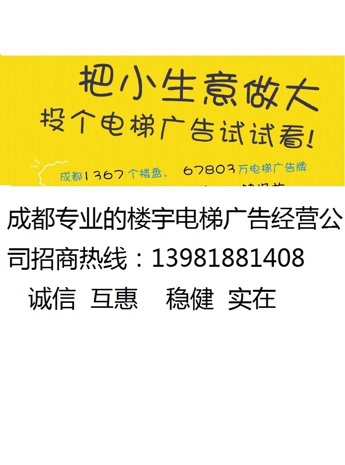 成都市區(qū)電梯廣告 投放的熱線:139-8188-1408,謝謝您的支持。