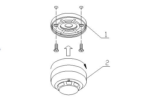 2 安 裝時(shí)應(yīng)先將掛板固定好,然后插入引出線,再將報(bào)警器旋入底座中。如下圖所示:
