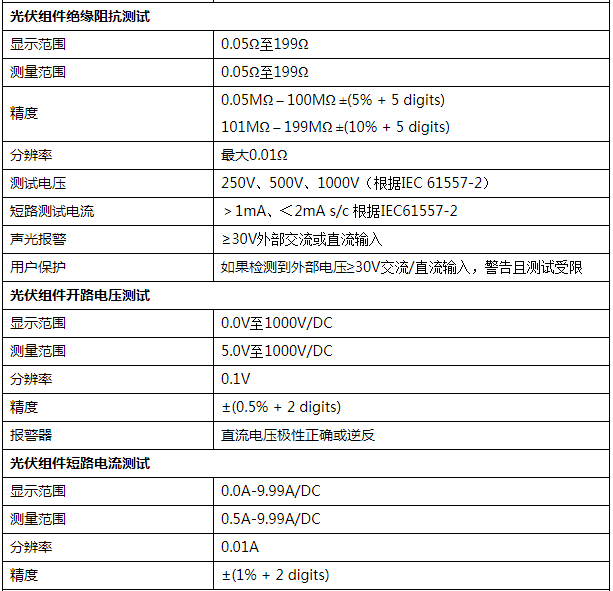 光伏發(fā)電系統(tǒng)工程多功能測試儀技術(shù)參數(shù)