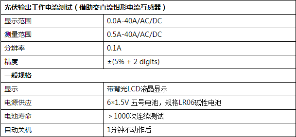 ü 光伏陣列串聯(lián)短路電流測量,最高達10a直流