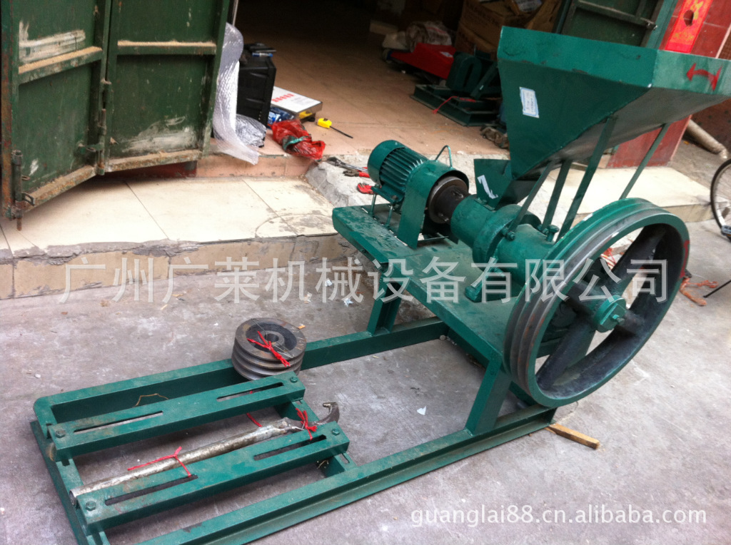 三.切粒部分,切粒大小由出?锥ǎ肱砘话4.5公分,孔子開(kāi)4-5個(gè),要想產(chǎn)量高,不彭化可開(kāi)10-15個(gè)孔,小電機(jī)可前后調(diào)整,刀在順向,下料時(shí)最好先用3-5市斤飼料加多水做起頭。