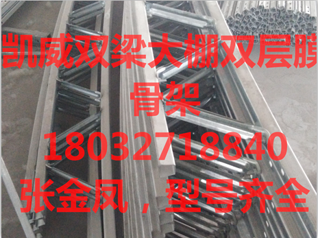 雙梁大棚骨架加工廠 雙膜大棚骨架作為一般新興的建棚安 裝方式,非焊接組裝工藝,雙梁大棚拱架也越來(lái)越受到廣泛的關(guān)注,目前山東,安 徽,陜西,東北吉林,寧夏都有使用