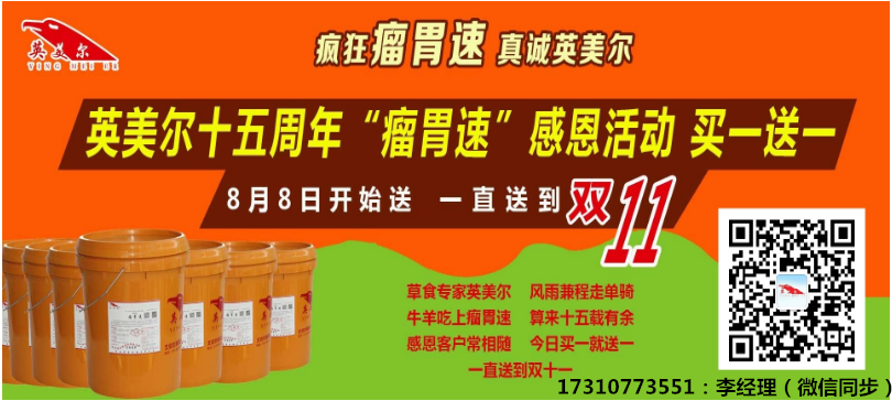 美爾“15周年慶 真情感恩大回饋”+“雙十一”特惠活動(dòng):瘤胃速(牛羊催肥劑 ) —“買(mǎi)1送1”,持續(xù)三個(gè)月,2017年度最大優(yōu)惠政策,還等什么?