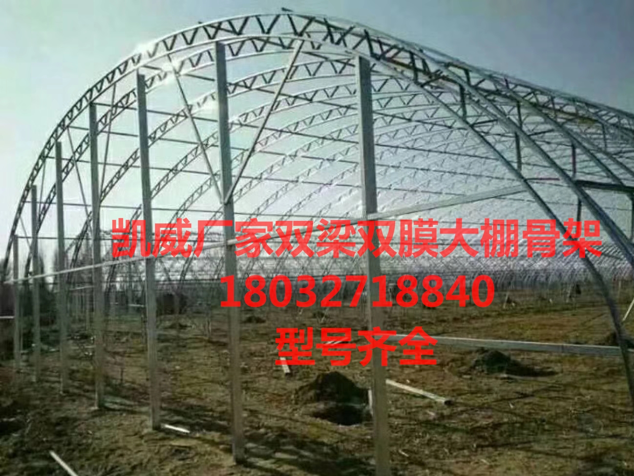 泊頭市達威有限公司生產(chǎn)制作各種規(guī)格雙梁雙膜大棚骨架,質(zhì)優(yōu)價廉。量大優(yōu)惠。