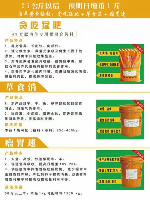 3、適當(dāng)添加【瘤胃素 (牛羊催肥促長(zhǎng)添加劑 )】加速營(yíng)養(yǎng)物質(zhì)的吸收,快速提高增重。