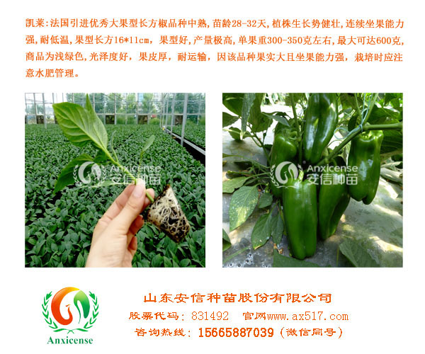安 信種苗甜椒苗抗病性強(qiáng),成活率高,根系發(fā)達(dá),莖稈粗壯,子葉保持完好,葉片開(kāi)展度好、亮度高,花芽分化充分,出苗整齊種苗健壯,抗病性強(qiáng),抗逆性好,連續(xù)座果能力強(qiáng),返苗快,產(chǎn)量高,苗齡28-32天。