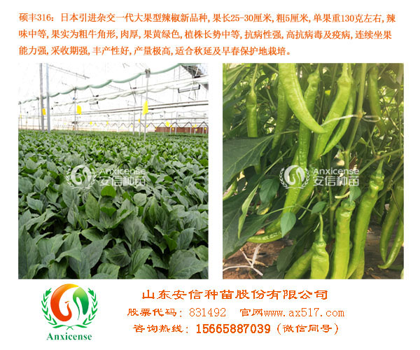 安 信種苗-辣椒苗品種,純度高,根系發(fā)達(dá),莖稈粗壯,子葉保持完好,葉片開展度好、亮度高,花芽分化充分,出苗整齊種苗健壯,抗病性強(qiáng),抗逆性好,連續(xù)座果能力強(qiáng),返苗快,產(chǎn)量高。苗齡28-32天。安 信種苗作為國內(nèi)第一家上市育苗企業(yè),擁有豐富的育苗經(jīng)驗(yàn)和先進(jìn)的育苗技術(shù),產(chǎn)供銷一條鏈,并有強(qiáng)大的售后服務(wù)隊(duì)伍,為您的種植提供貼心的售后技術(shù)指導(dǎo),保證您豐產(chǎn)增收!