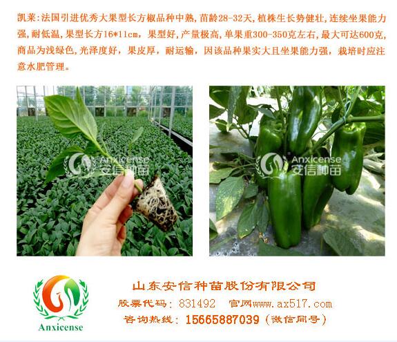 安 信種苗甜椒苗抗病性強(qiáng),成活率高,根系發(fā)達(dá),莖稈粗壯,子葉保持完好,葉片開(kāi)展度好、亮度高,花芽分化充分,出苗整齊種苗健壯,抗病性強(qiáng),抗逆性好,連續(xù)座果能力強(qiáng),返苗快,產(chǎn)量高,苗齡28-32天。