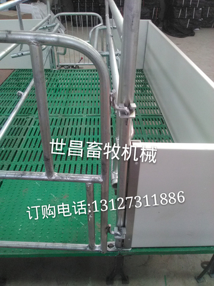母豬限位欄架:現(xiàn)貨標(biāo)準(zhǔn)產(chǎn)床采用外框1寸管,壁厚2.5mm,內(nèi)襯6分管壁厚2.2mm,前后門(mén)外框6分管,內(nèi)襯4分管,配備3根母豬防跳桿。