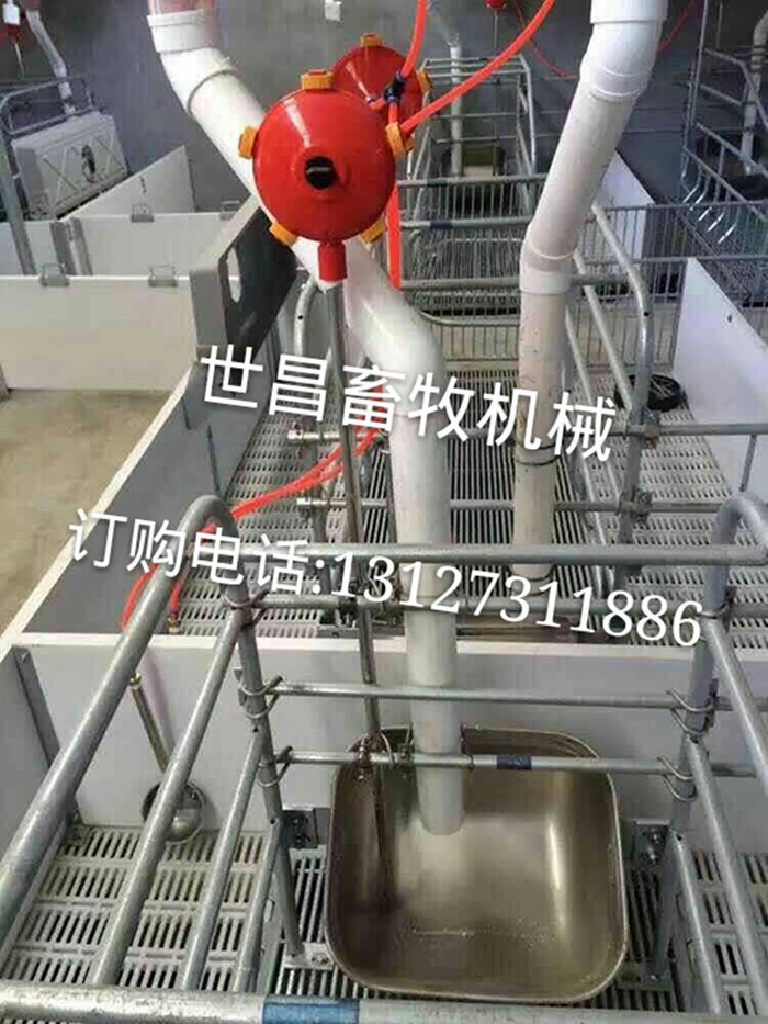 自動飼喂料線: 豬場自動化料線供料設備主要包含:料塔、動力箱、控制箱、管道、鏈條等?梢詰玫接守i舍、妊娠舍定位欄、保育舍、產房、母豬散養(yǎng)電子飼喂站、種豬測定設備等。其中定位欄上要用到定量杯及落料系統(tǒng)下料。其它可用三通下料。