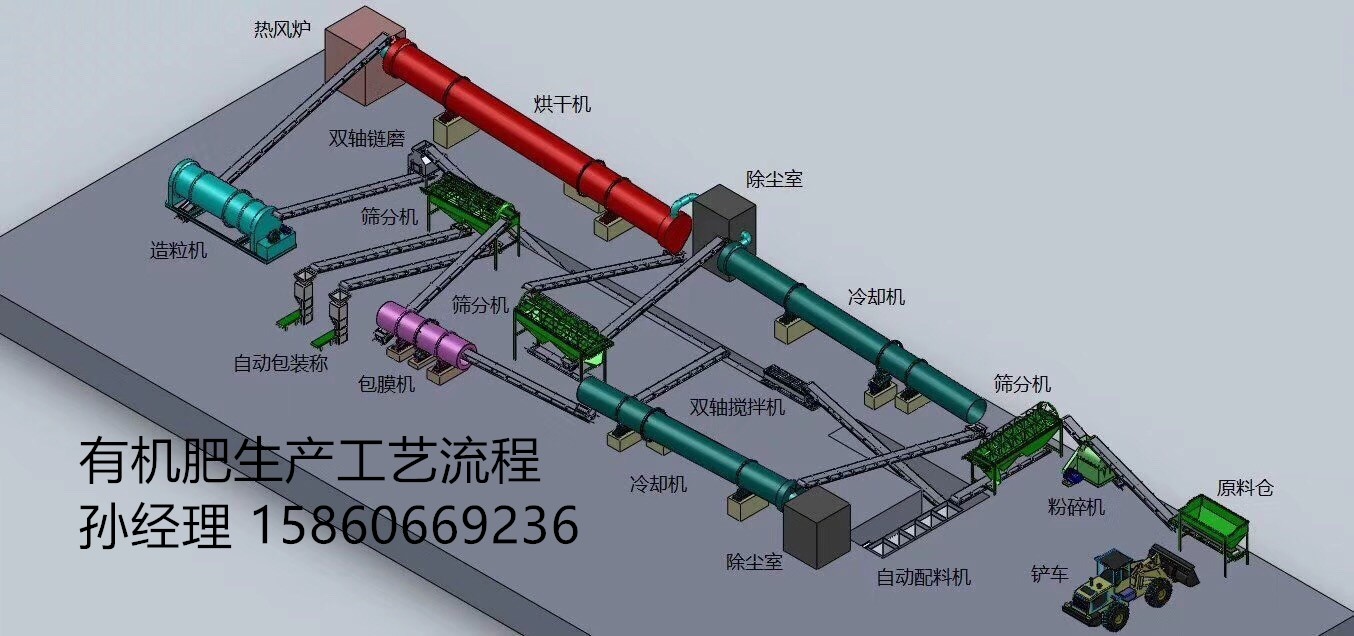 以供參考:一、雞糞有機肥生產(chǎn)線生產(chǎn)工藝 發(fā)酵池投放發(fā)酵物——均勻撒入菌劑 ——翻堆發(fā)酵——發(fā)酵12-15天——出池——篩分機——粉 碎——混合攪拌——(造粒)包裝——出售二、雞糞有機肥生產(chǎn)線,雞糞有機肥生產(chǎn)設(shè)備工藝流程 1、槽式翻堆機采用槽式生物發(fā)酵,根據(jù)客戶的生產(chǎn)規(guī)模不同來確定槽式翻堆機的寬度的長度以及發(fā)酵槽,將發(fā)酵物連續(xù)投入發(fā)酵池中,每天利用翻堆機向發(fā)酵槽另一端移位,同時能夠起到水分調(diào)節(jié)和攪拌均勻目的,這樣即可以節(jié)約大量土地和大量人工。又能達到充分腐熟的目的。2、鏟車用鏟將翻到發(fā)酵池頂端發(fā)酵好的有機肥移到半成品堆放區(qū),便于每天處理被翻堆機拋翻到頂端的發(fā)酵好的有機肥及時出池。3、篩分機將發(fā)酵好的有機肥進行分篩,將里面的大塊和雜物分檢出來,便于下一步的粉 碎和包裝。4、半濕物料粉 碎機(雙擊物料粉 碎機)將篩出來的有機肥中的大塊雜物以及石頭分檢出來后進行粉 碎,這樣即美觀又可以保證產(chǎn)品的質(zhì)量。5、有機肥攪拌機將分篩和粉 碎后的有機肥進行予混能夠保證產(chǎn)品質(zhì)量的穩(wěn)定,也可深加工做成顆粒有機肥料。6.包裝按比例配方混合后就可進入粉 狀包裝機封袋。如果想做顆粒有機肥生產(chǎn)線,再攪拌后就可進入造粒,烘干,篩分之后在進入包裝機。雞糞有機肥生產(chǎn)線價格,雞糞有機肥設(shè)備生產(chǎn)廠家,您想獲得雞糞有機肥生產(chǎn)線價格最新報價嗎?