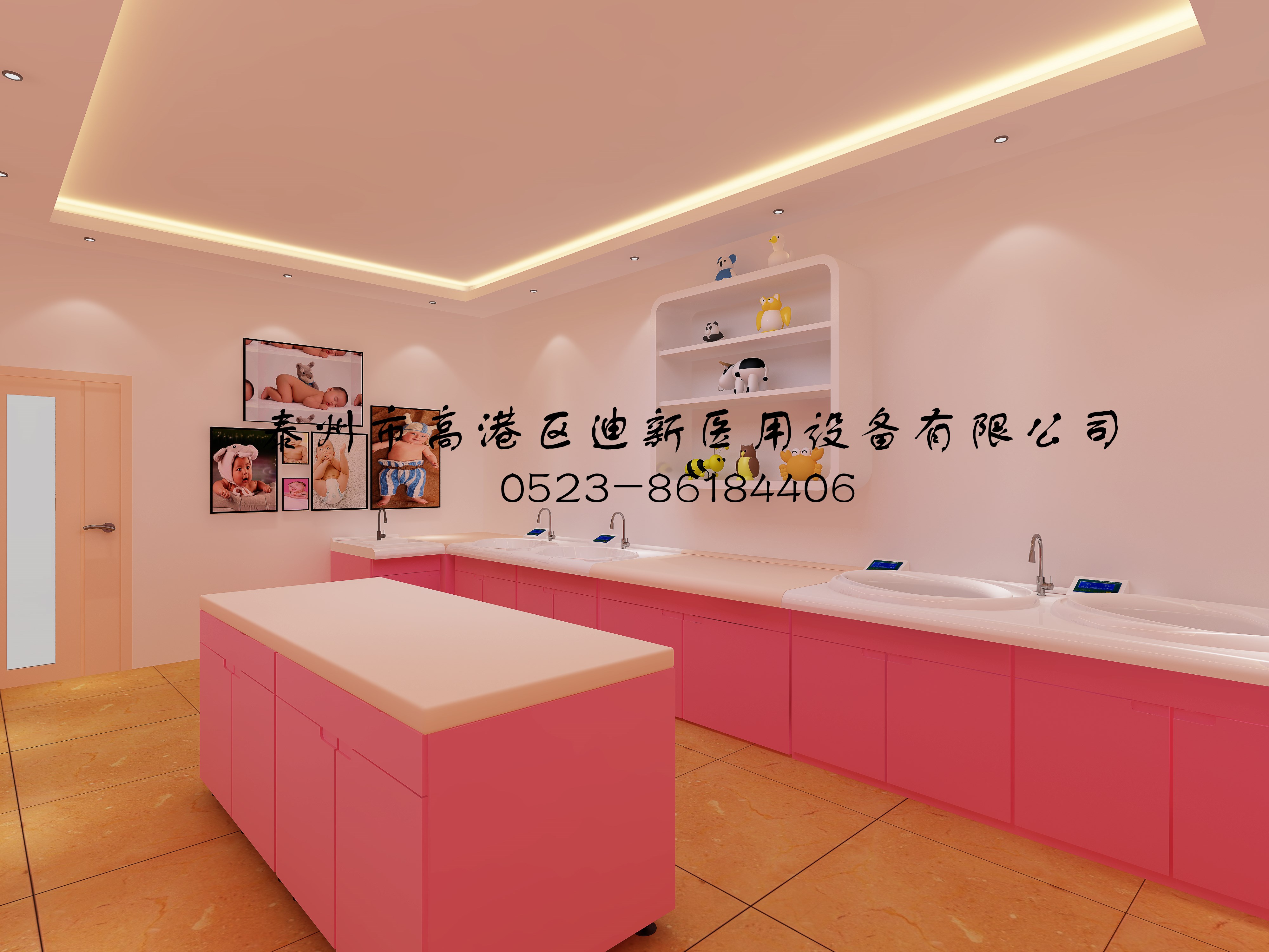 組成:嬰兒洗浴中心由嬰兒洗禮池,嬰兒游泳池,護(hù)理平臺(tái),撫處軟包臺(tái),洗手池組成。