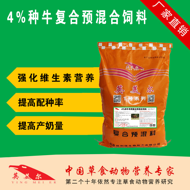 母牛專用預(yù)混料——4%種牛預(yù)混料,效預(yù)防母牛不發(fā)情、流產(chǎn)、產(chǎn)后癱瘓、胎衣不下等營養(yǎng)代謝。粻I養(yǎng)全面均衡,長期使用可以提高泌乳質(zhì)量,預(yù)防母牛乳房炎、犢牛營養(yǎng)不良癥等;綠色、安 全,絕對(duì)是各大養(yǎng)殖場的理想產(chǎn)品!