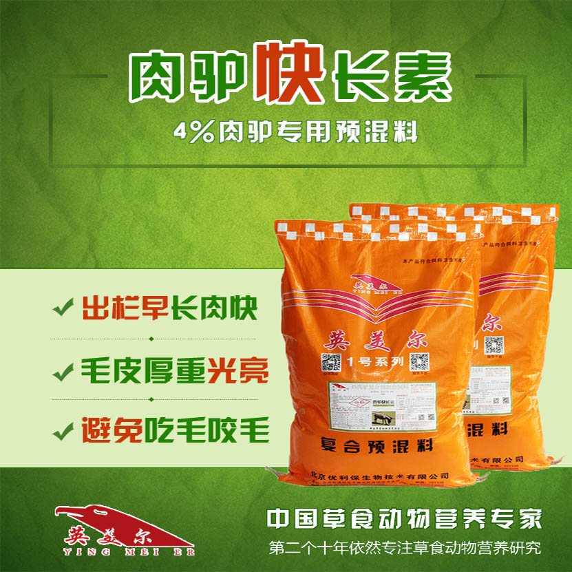 在精飼料中添加英美爾牌4%肉驢預混料,能有效補充肉驢生長所需的礦物質(zhì)、維生素 和氨基酸 ,快速提高肉驢生長速度,實現(xiàn)肉驢快速催肥。