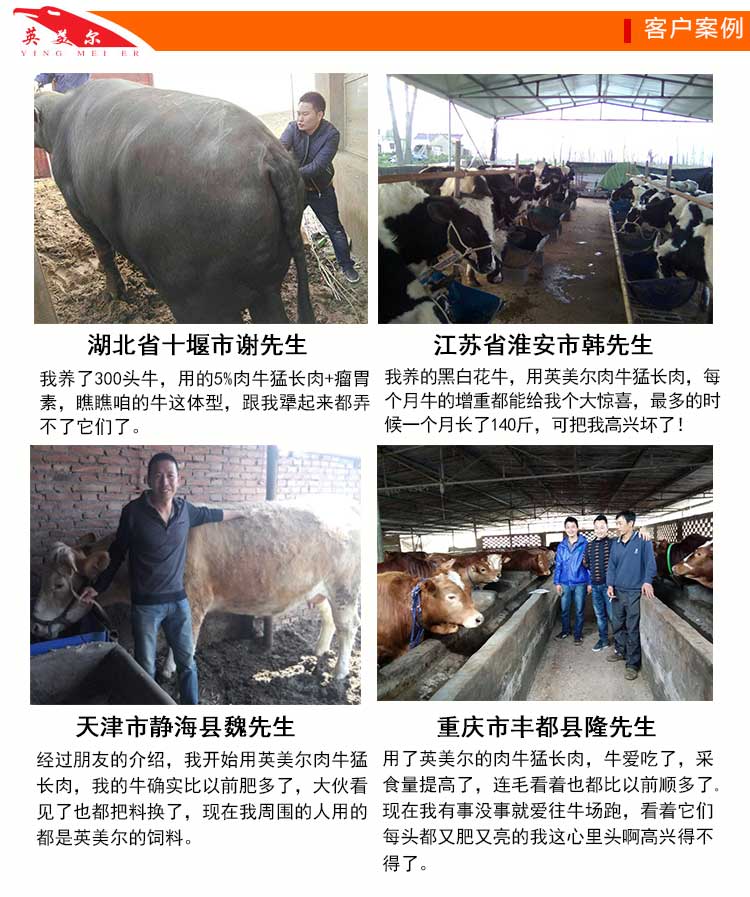 5、肉牛后期育肥效果尤為顯著,育肥肉牛場快速增重專用預混料飼料。